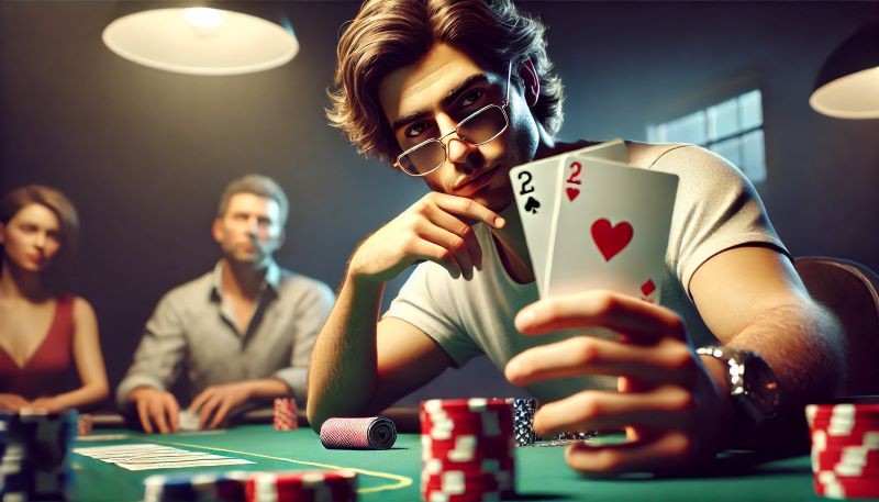 在德州扑克中每一名玩家会得到两张牌面朝下的底牌。而最终目的是要在用手中的两张底牌与上面的五张公共牌进行匹配,以获得最佳的五张牌组合,由牌面最大的玩家获胜。